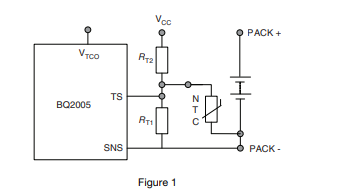 低故障,高故障和低故障時NTC周圍的電壓截止溫度必須符合閾值為BQ2005設計。這由等式表示(1a),(1b)和(1c)。