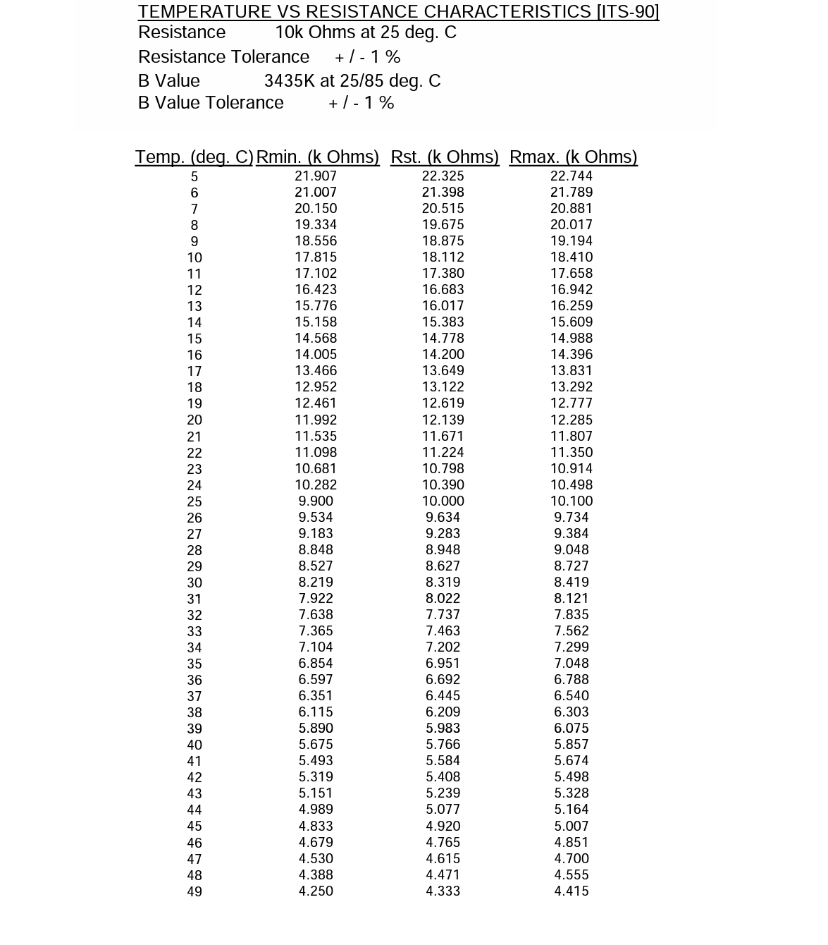 (圖為漆包線阻值與溫度對(duì)照表(RT表),每個(gè)電阻的RT都不一致 請(qǐng)點(diǎn)擊右側(cè)聯(lián)系我們獲取對(duì)應(yīng)的RT表)